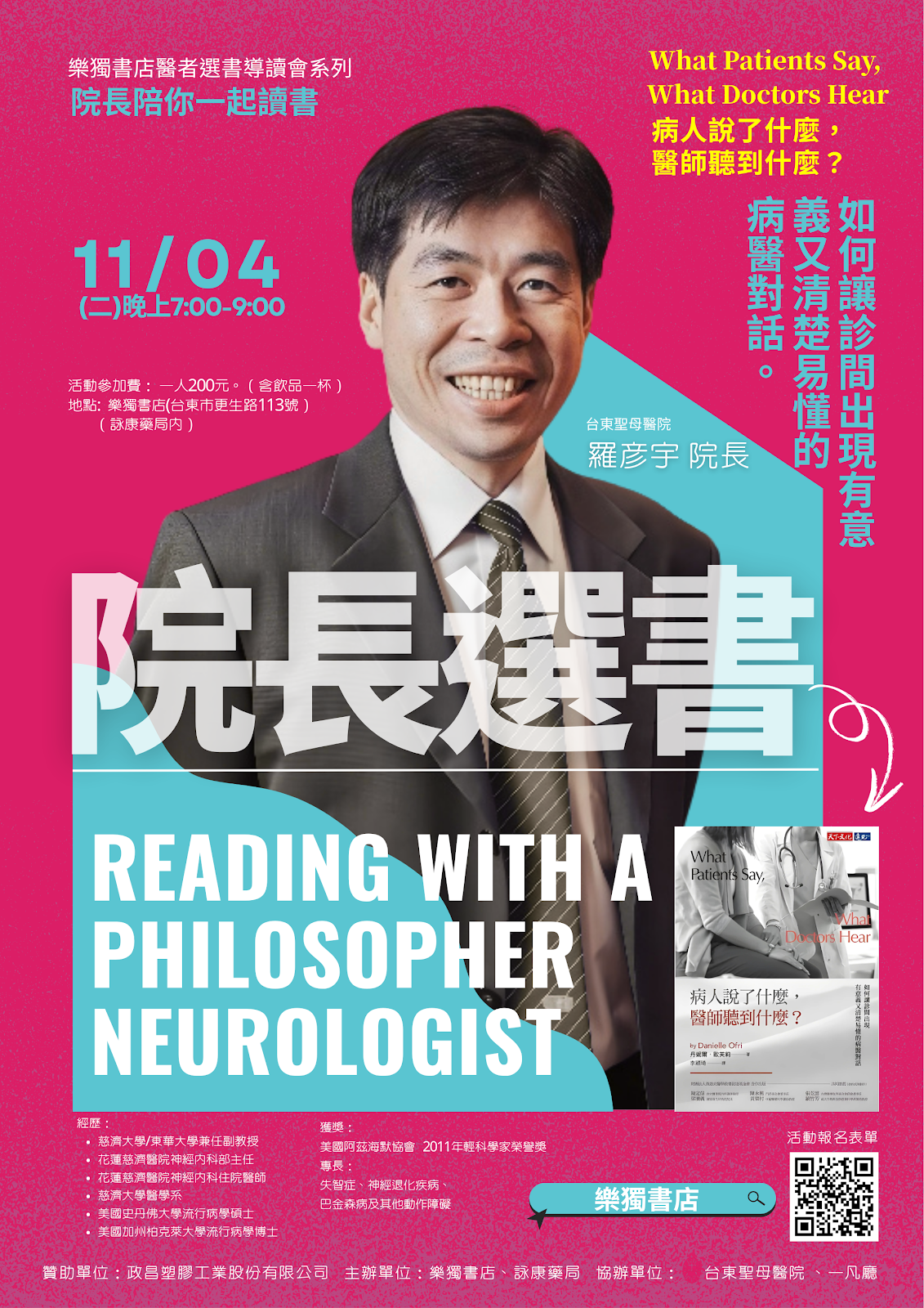 無論您是醫護人員、醫療行政工作者,或是關心自身與家人健康的一般民眾,這場導讀都將為您帶來極具啟發性的思考。