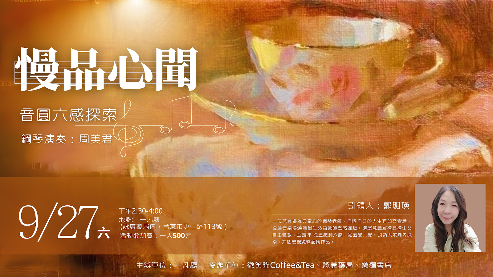 在引領人郭明瑛老師與鋼琴家周美君老師的現場演奏中,我們將透過味蕾開啟一段前所未有的聯覺體驗。