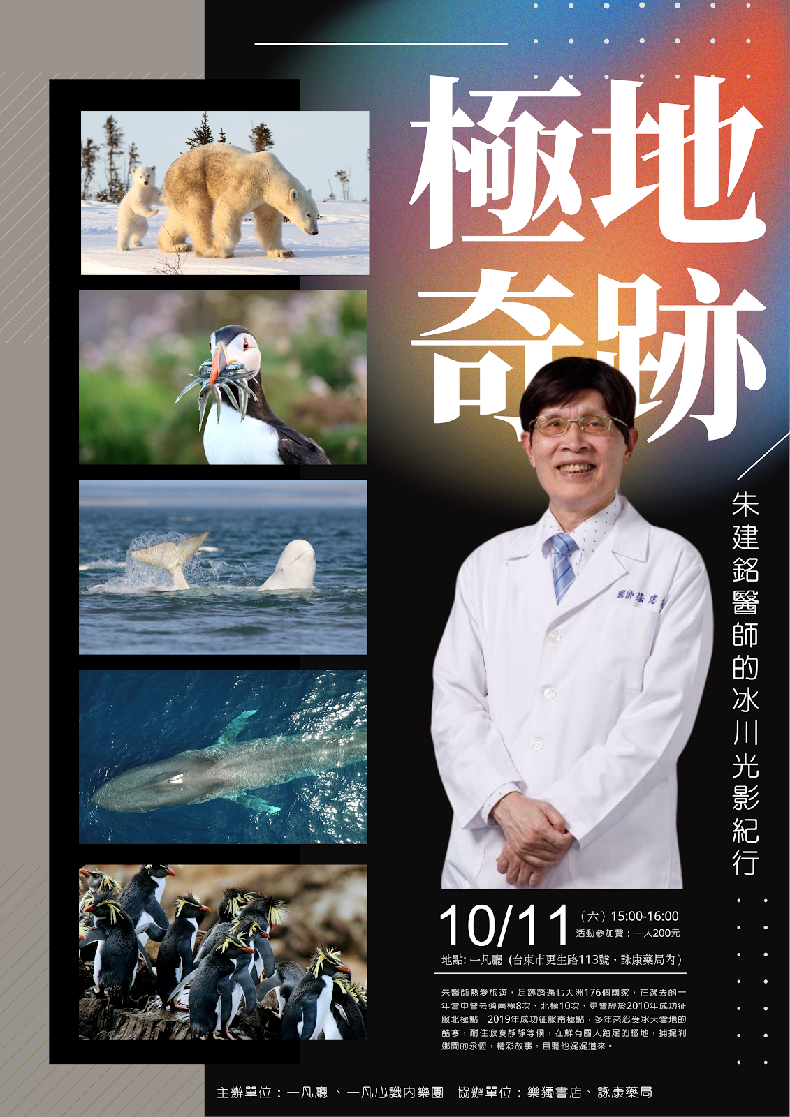 這次,朱醫師將親自帶我們走進他鏡頭下的冰雪世界,分享他在極地的奇蹟旅程: